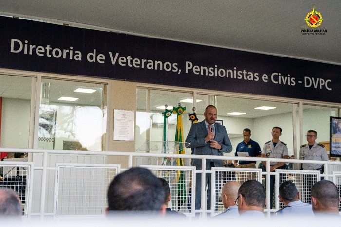 A Diretoria de Veteranos, Pensionistas e Civis (DVPC) inaugurou na tarde desta terça-feira (31 de Maio), a nova sede localizada nas instalações do antigo mercado da CABE, no Setor Policial Sul. O diretor da DVPC, coronel Carlos Chagas de Alencar, pediu permissão ao comandante-geral da PMDF, coronel Fábio Augusto, para iniciar a solenidade. O comandante-geral, por sua vez, pediu ao coronel veterano mais antigo presente na solenidade, o coronel Resende, a autorização para dar início a solenidade, demonstrando respeito aos veteranos.