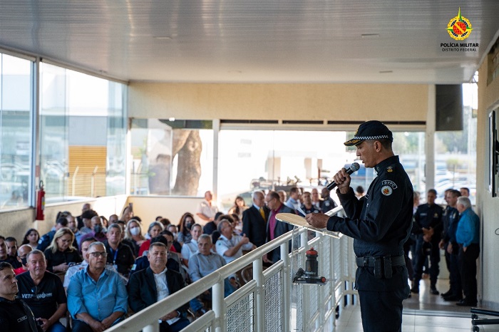 O primeiro a fazer uso da palavra foi o diretor da DPVC, coronel Carlos Chagas de Alencar. Durante sua fala, o coronel Alencar fez uma homenagem especial a família do sargento Sérgio, um dos integrantes da DPVC, vítima da pandemia de covid 19. Neste momento toda a sua família foi convidada para ser prestada a devida homenagem. A esposa do sargento Sérgio recebeu das mãos do comandante-geral uma placa. Enquanto isso, o coronel Alencar falou que o sargento Sérgio trabalhava na seção de Reserva e Reforma e que era um guerreiro responsável por atender vários policiais: “muitas vezes quando nossos policiais militares necessitavam de cálculos, ou orientação para ingressar na reserva remunerada ou quando eram reformados, o sargento Sérgio os ajudava”. Os presentes aplaudiram o momento. O coronel Alencar falou ainda sobre o comandante-geral, o subcomandante da PMDF, e o chefe do Estado-Maior: “eles sabem como é difícil estar sobre o lombo de um cavalo, sabem o que é o frio da madrugada em Planaltina. Então não são homens que chegaram por acaso, eles tem uma história e essa história é refletida também aqui”, complementou o coronel Alencar.