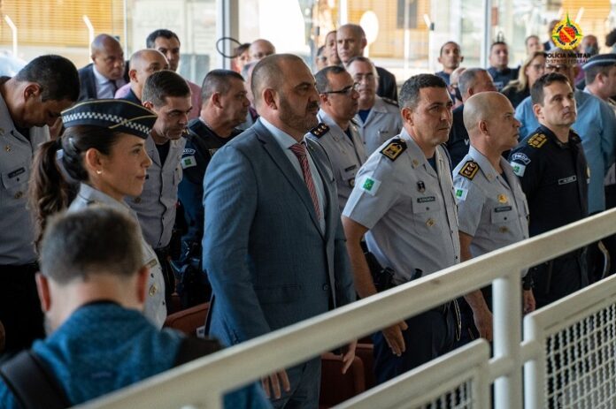 Logo depois, o Secretário Nacional de Segurança Pública, coronel Paim, fez uso da palavra. Para ele, é sempre uma honra dos eventos da Corporação. O oficial levou uma abraço fraternal do Ministro da Justiça e do Presidente da República. “Eu me sinto mais honrado em participar de um evento dessa natureza, com os nossos veteranos, pessoas que hoje são responsáveis pela formação dos nossos coronéis. Se hoje nós temos uma formação que nos habilita a levar os desafios, o comando de uma corporação ou até mesmo a Secretaria Nacional de Segurança Pública, ou outras pastas importantes em nosso país, são os senhores e senhoras que nos antecederam, que nos passaram aquelas orientações durante todo processo de formação e do convívio do trabalho”, disse o coronel Paim.