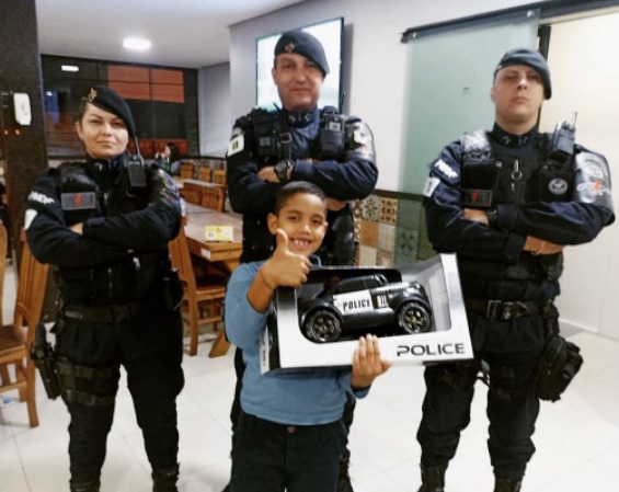 Policiais militares do Grupo Tático Operacional do 9º Batalhão (Gtop 29) fizeram a alegria de mais um fã mirim da corporação. O pequeno Kauã completou 7 aninhos e teve uma grande surpresa ao receber a visita dos policiais em sua festa de aniversário.