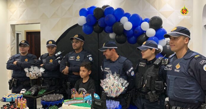 Policiais militares de Taguatinga participaram de um momento muito especial no aniversário do pequeno Júlio César, admirador da PM, que completou 10 anos, neste sábado (7).