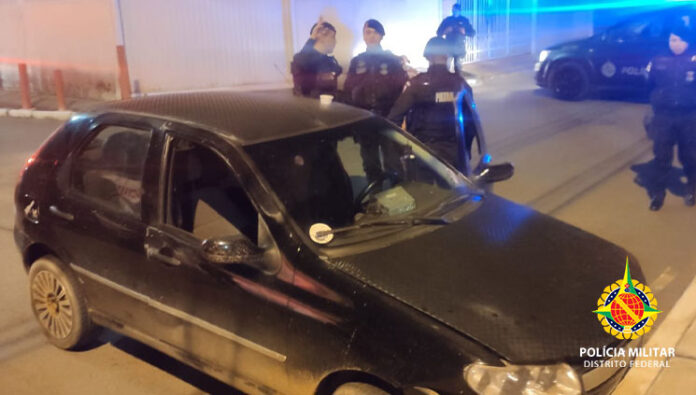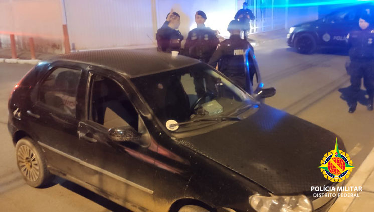 Equipe estava em patrulhamento quando receberam a informação que homens estariam em um Fiat de cor escura praticando roubos a transeuntes nas mediações de Ceilândia Sul. Após intensificar policiamento o veículo foi encontrado na QNN 22 com os três suspeitos. Foi dado ordem de parada, porém não respeitada e os elementos empreenderam em fuga se deslocando em alta velocidade e dirigindo na contramão.