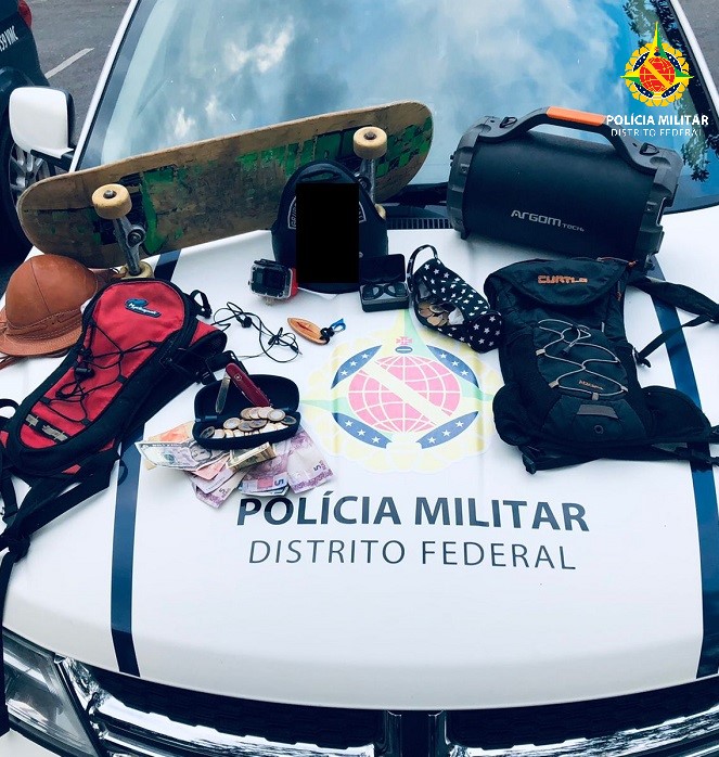 Com a dupla foram encontrados objetos furtados da residência. Nas imagens das câmeras de monitoramento foi visto que a dupla havia escondidos outros objetos furtados em arbustos perto da residência. Foram furtados um skate, uma caixa de som, um chapéu de couro, dinheiro, mochila, filmadora, dentre outros objetos, todos recuperados pela PMDF. A ocorrência foi registrada na 9ª DP e na DCA – I.