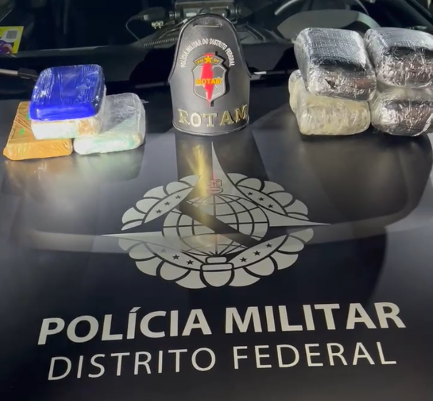 Dentro do veículo foram encontrados: quatro tabletes de skunk, dois tabletes de cocaína e dois tabletes de crack.
