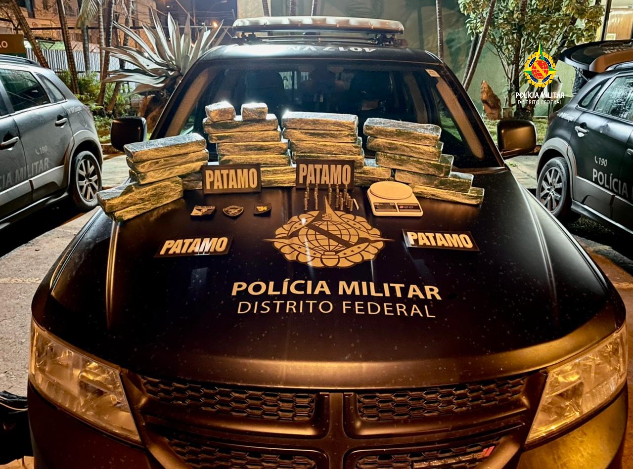 Policiais militares prenderam dois homens por tráfico de drogas, porte ilegal de arma de fogo ou munição e mandado de prisão em aberto nesta sexta-feira (4), por volta das 22h30, em Taguatinga.