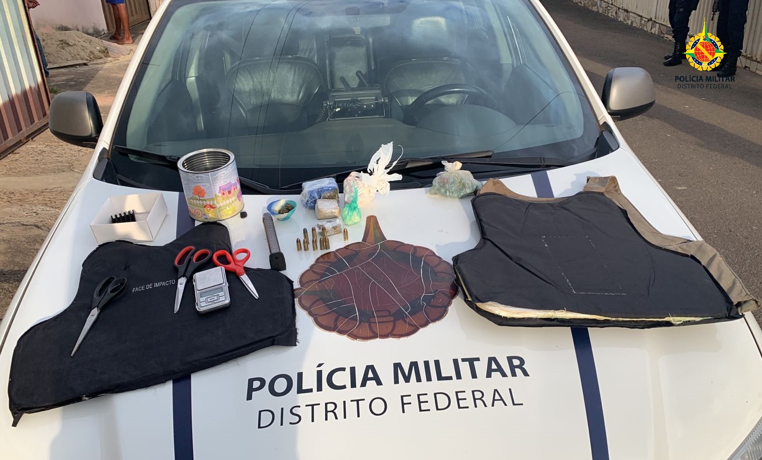 Policiais militares do Grupo Tático Operacional do 9º Batalhão (Gtop 29) prenderam dois homens, recuperaram um carro roubado e apreenderam munições, entorpecente e um colete balístico. O fato ocorreu por volta das 17h desta terça-feira (3) no Gama.