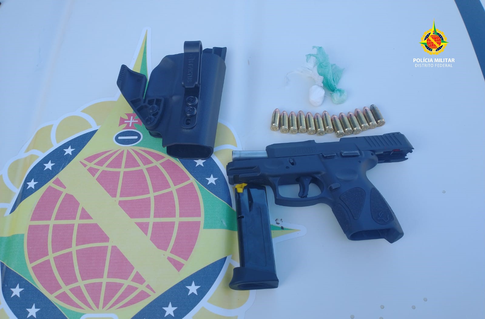 A equipe abordou o homem e encontrou duas porções de cocaína. Os ocupantes do carro também foram abordados e nada de ilícito foi encontrado. Porém, no interior do veículo havia uma pistola calibre 9mm com 13 munições intactas.