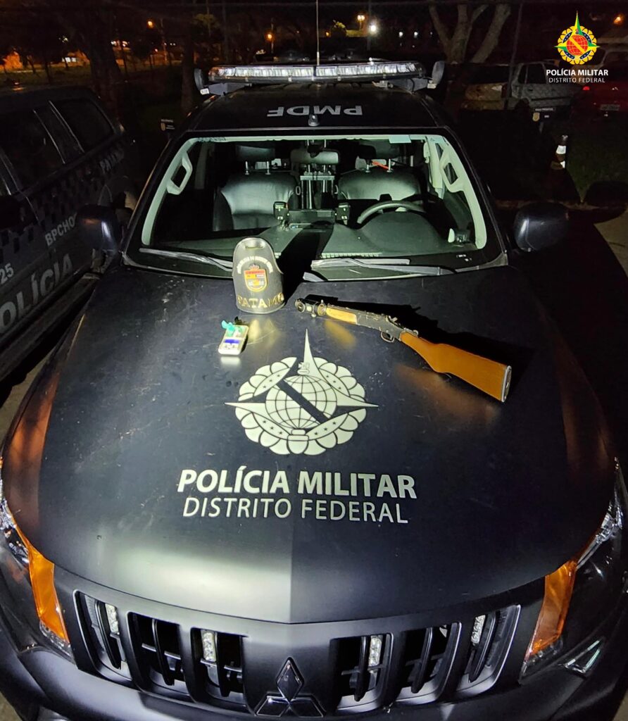 A Policia Militar do Distrito Federal, por meio do Patamo e BPChoque, prendeu dois homens por porte ilegal de arma de fogo no Recanto das Emas, nesta quinta-feira (11).