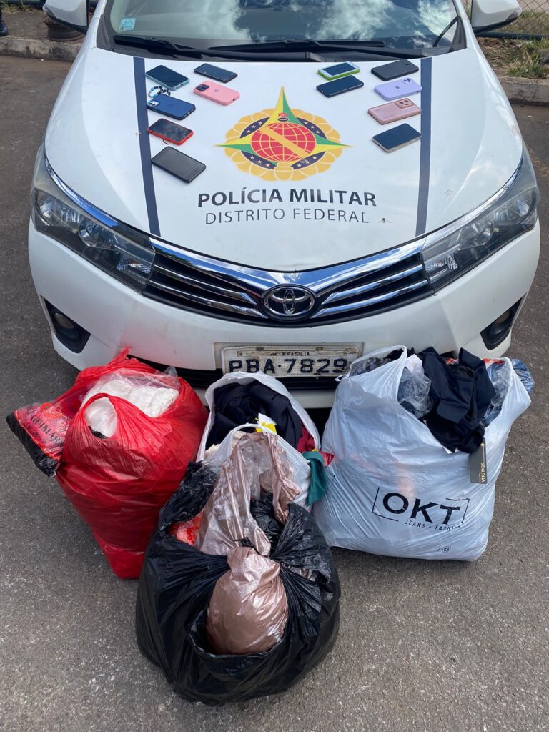 A vítima que rastreava o aparelho celular informou outra localização, onde um indivíduo tentou fugir para dentro de uma casa, no Riacho Fundo, mas com apoio de viaturas da área e do BPMA, ele foi abordado. Em cima de uma mesa foram encontrados seis aparelhos celulares cuja procedência o homem não soube explicar, além de uma aliança e uma porção de maconha.