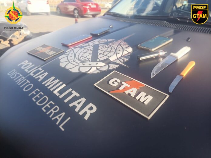Os policiais da Rotam prenderam às 16h desta sexta-feira (22), três suspeitos de roubar pedestres em Taguatinga.