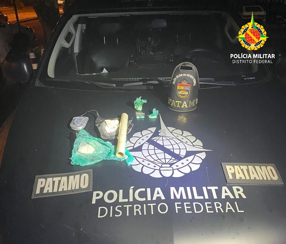 As equipes da Rotam receberam informações que um homem estaria comercializando entorpecentes na QNN 7, próximo de uma farmácia. O suspeito foi localizado e abordado. Próximo do homem, foi encontrado porções de cocaína. O homem acabou assumindo a propriedade do material e informou que teria mais em sua residência. No imóvel foi encontrado mais porções de entorpecentes e uma balança de precisão.