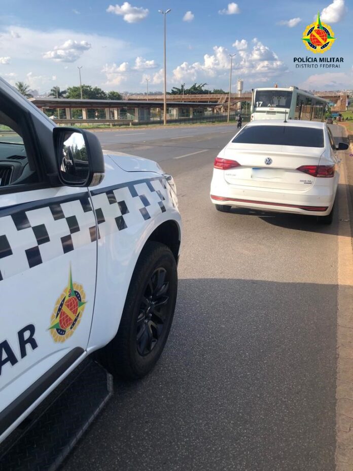 A PMDF foi informada de que o carro usado na fuga estava trafegando na EPIA Sul. A equipe do Gtop 45 fechou o cerco e conseguiu interceptar o veículo. Um homem foi detido e conduzido à 21ª Delegacia para o registro da ocorrência.