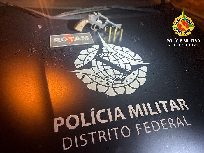 Policiais militares integrantes do X Curso Operacional de ROTAM, durante estágio supervisionado na noite desta quinta-feira, dia 9 de junho, prenderam um homem por porte irregular de arma de fogo. O fato ocorreu por volta de meia-noite na QNL 28 em Taguatinga Norte. O homem estava na rua e, antes de ser abordado, disse aos policiais que foi vítima de um roubo.