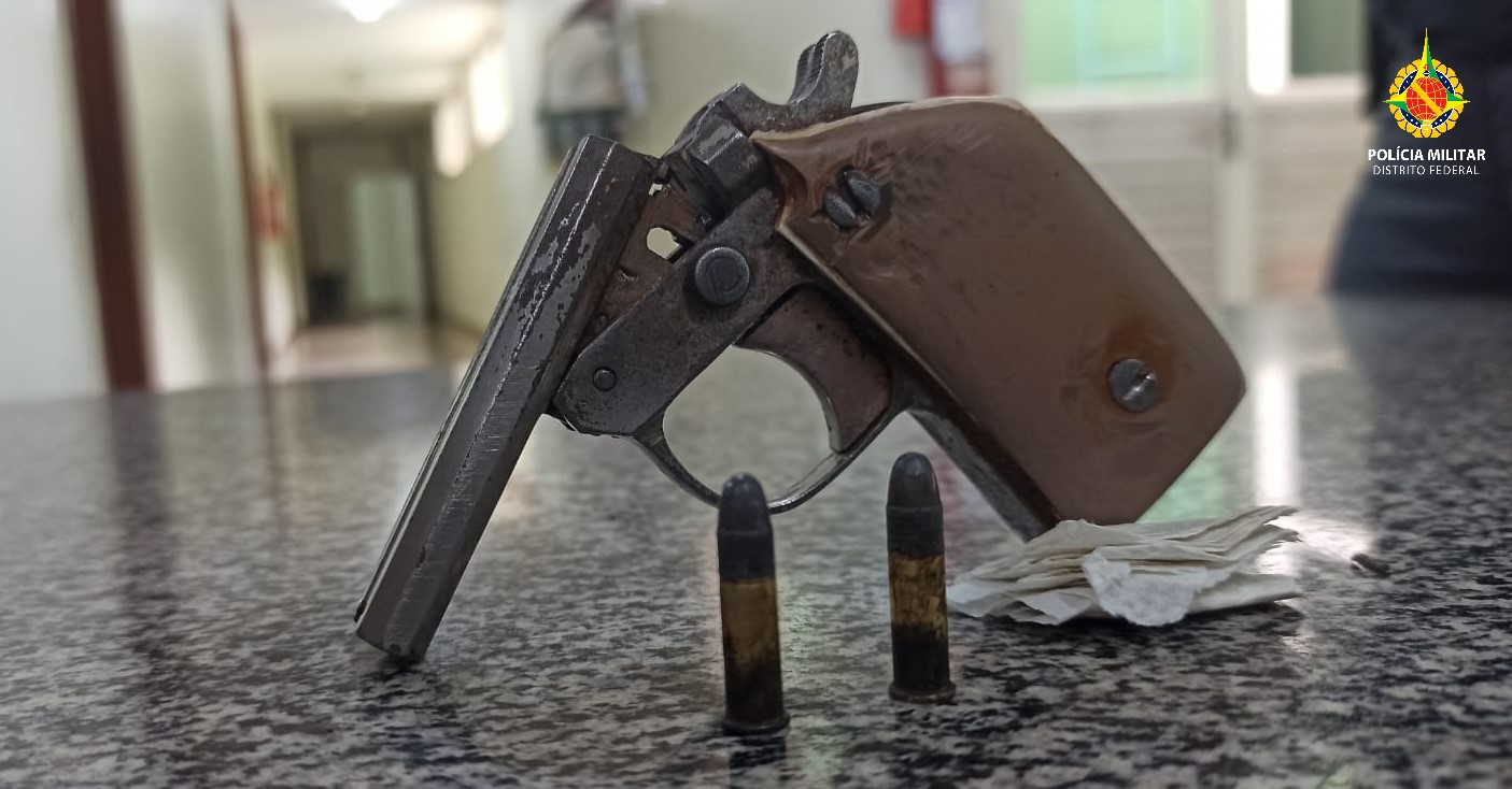 O acusado se envolveu em uma discussão de trânsito com funcionários de uma empresa de telefonia e chegou a apontar uma arma contra eles. As vítimas acionaram a PMDF e passaram características do autor e a placa do veículo.