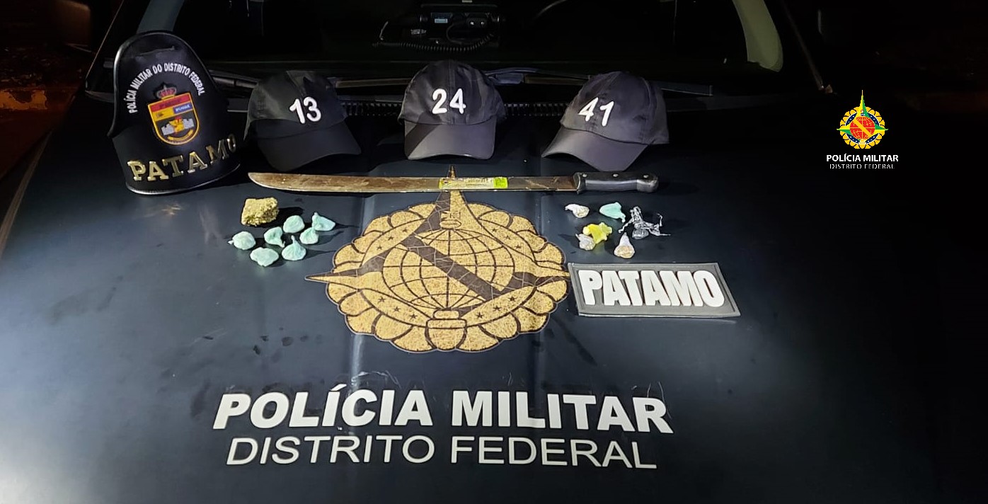 Policiais militares prenderam um homem portando drogas e um facção nesta sexta-feira (27), por volta das 21h, no Recanto das Emas.