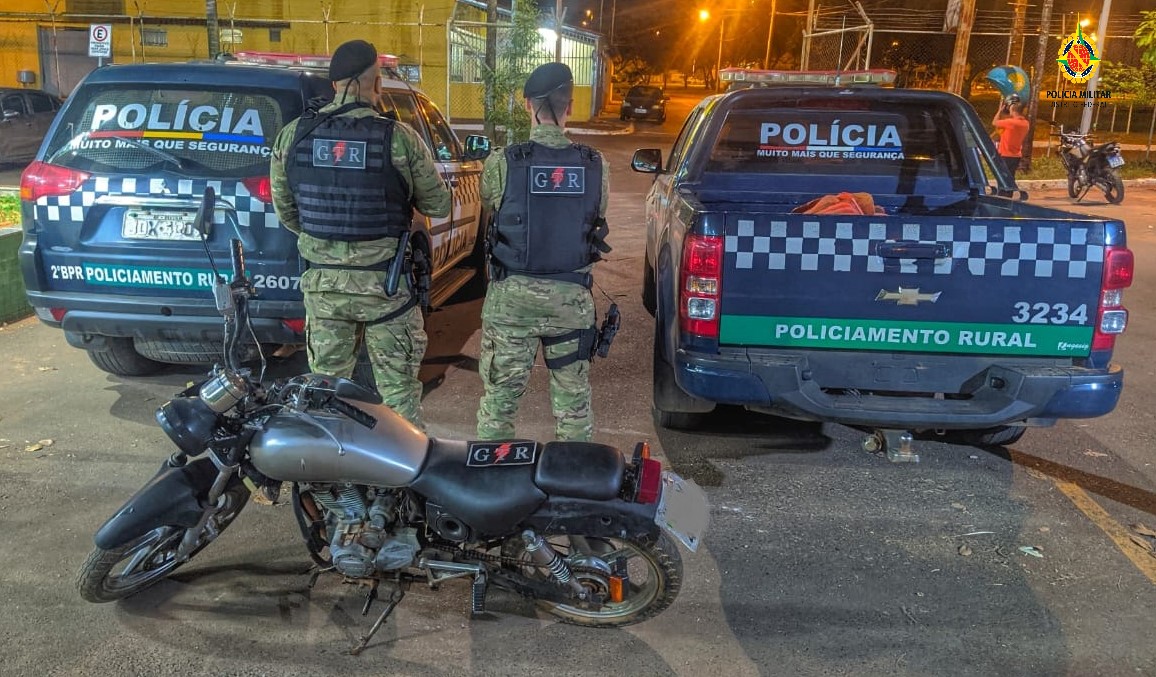 A equipe do Grupo Tático Rural (GTR) realizava o patrulhamento quando avistou o motociclista em atitude suspeita.