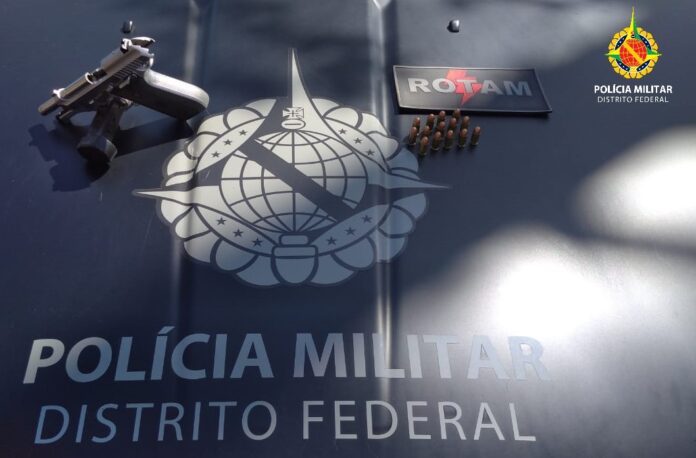 A Polícia Militar prendeu um homem por porte ilegal de arma de fogo, nesta tarde (30), na Quadra 800, Conjunto 1, via pública, no Recanto das Emas.
