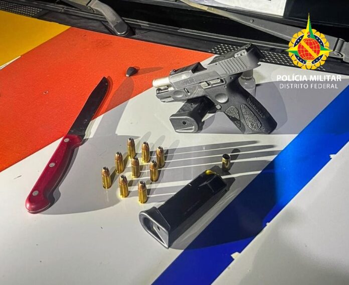 A Polícia Militar prendeu um homem por tentativa de homicídio e porte ilegal de arma de fogo na noite deste sábado (25) na QR 516 de Samambaia.