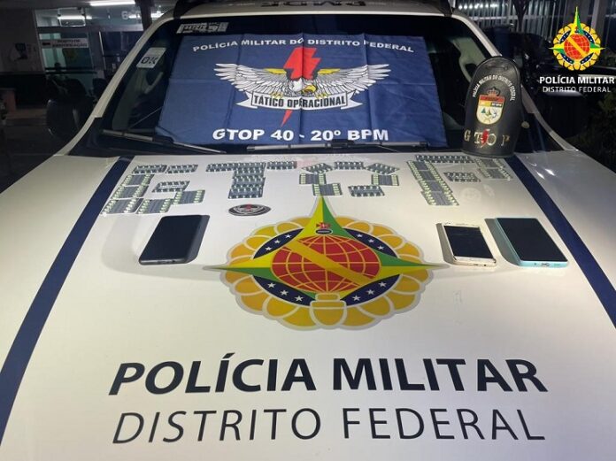 Durante patrulhamento na área do Paranoá Parque, a equipe de policiais do 20º Batalhão avistou três indivíduos próximos a um veículo Renault Logan branco. Ao perceberem a presença da viatura, um deles imediatamente tomou outra direção, afastando-se dos outros dois e levando consigo uma sacola.