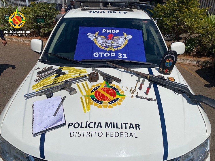 A Polícia Militar do Distrito Federal, após acionamento para uma ocorrência de Ameaça pelo Centro Integrado de Atendimento e Despacho, através das equipes de serviço do 11º batalhão de Samambaia neste Sábado (19), por volta das 10h, prendeu dois homens, que mantinham uma oficina de fachada voltada a fabricação de armas caseiras na QR 511, em Samambaia Sul.
