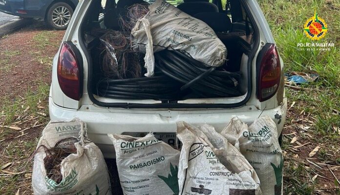 Chegando ao local, os policiais avistaram os homens dentro de um veículo abarrotado de cabos de energia. Ao avistar a viatura, um dos envolvidos tentou se esconder na mata, mas foi capturado. Os quatro indivíduos foram presos e conduzidos à 21ª Delegacia de Polícia.