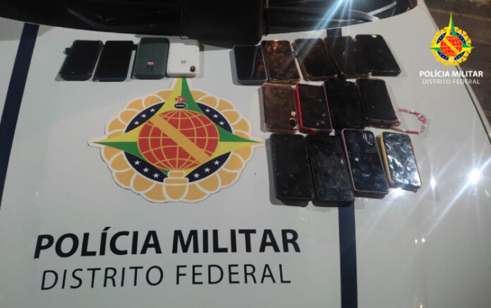 Chegando ao local, os policiais abordaram dois homens e duas mulheres, com eles foram encontrados 17 aparelhos celulares roubados.