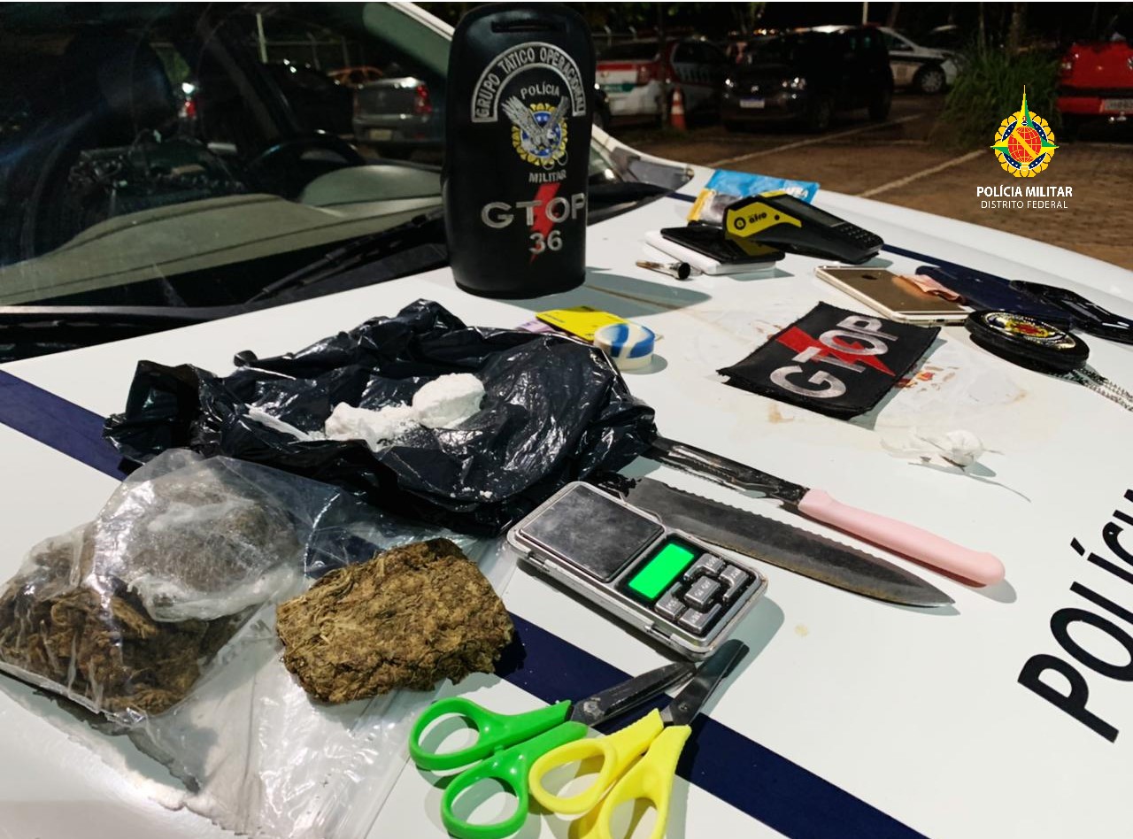 Policiais militares prenderam um homem por tráfico de drogas neste sábado (12), por volta das 22h, em Brazlândia.