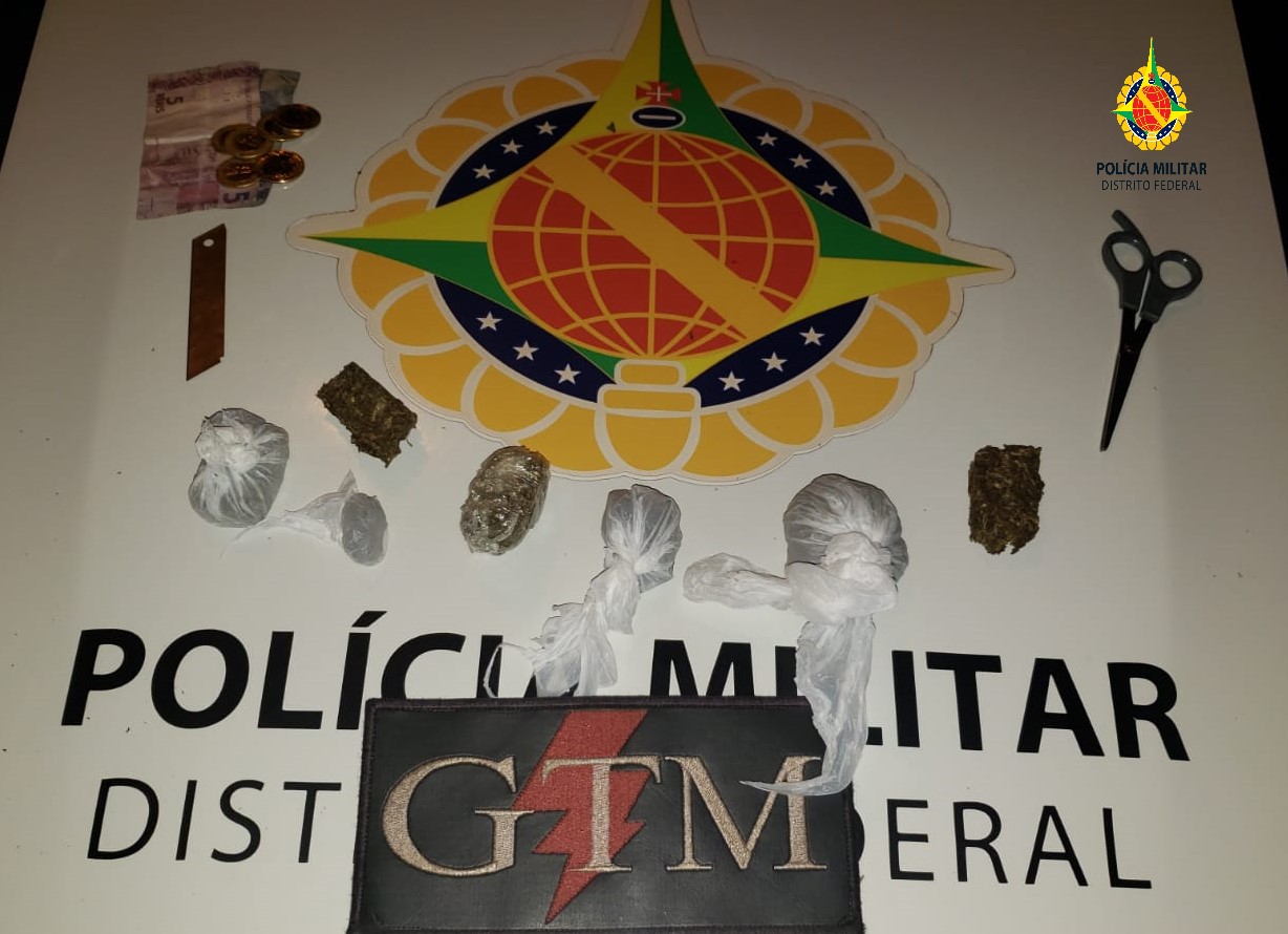 Policiais militares prenderam um homem por tráfico de drogas nesta segunda-feira (31), por volta das 20h30, em Taguatinga.