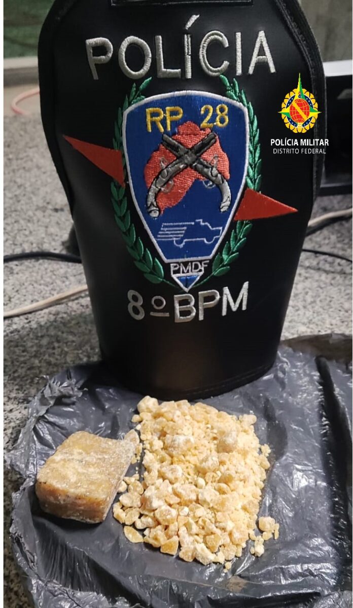 Chegando ao local, os policiais se depararam com o mesmo carro abordado. O passageiro, ao perceber a aproximação da viatura, arremessou uma sacola preta contendo uma grande quantidade de crack embaixo de um carro.