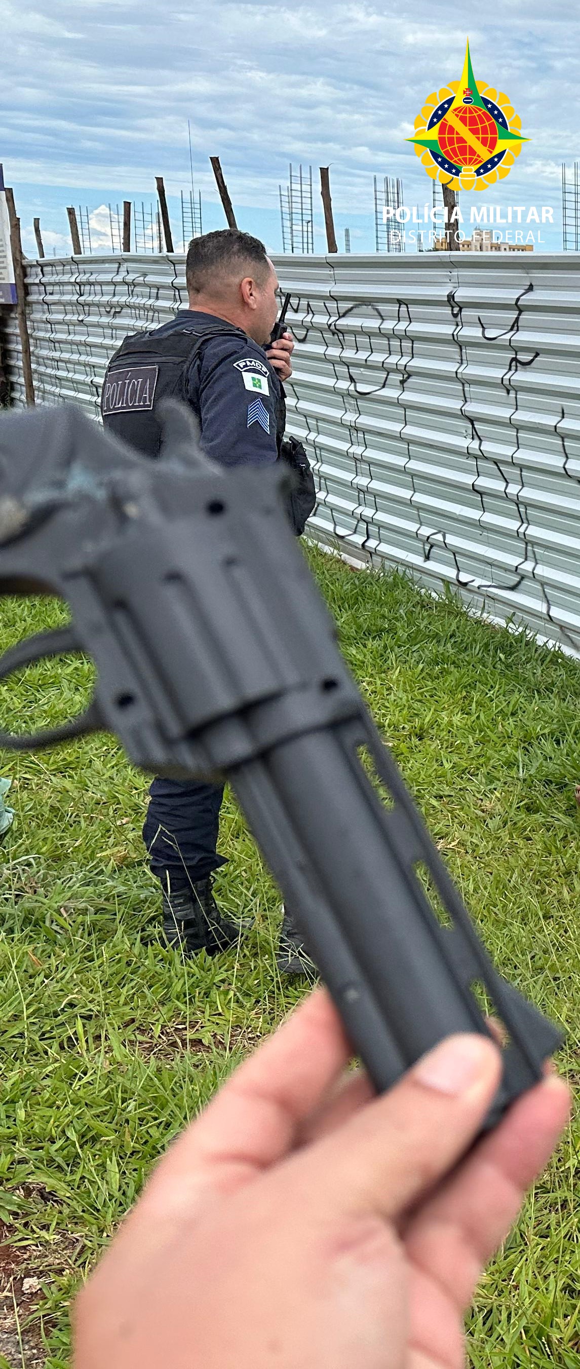 Imediatamente, foi feito o deslocamento até o local e, ao avistar os três indivíduos, foi realizada a busca pessoal. Os pertences das vítimas, juntamente com um simulacro de arma de fogo usado no crime, foram encontrados descartados na grama ao lado do local da abordagem.
