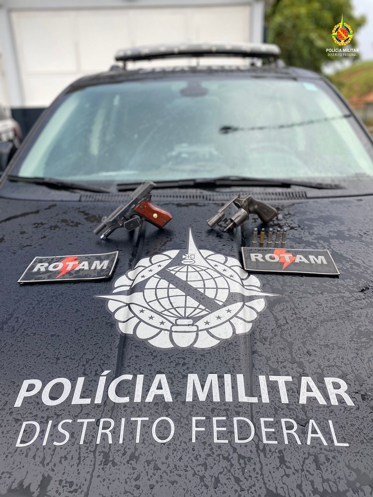 Policiais Militares da ROTAM prenderam um indivíduo com duas armas de fogo, as 15h00 desta sexta-feira (25), no Rancho Pesadelo, Chácara A, Capão da onça, Brazlândia-DF