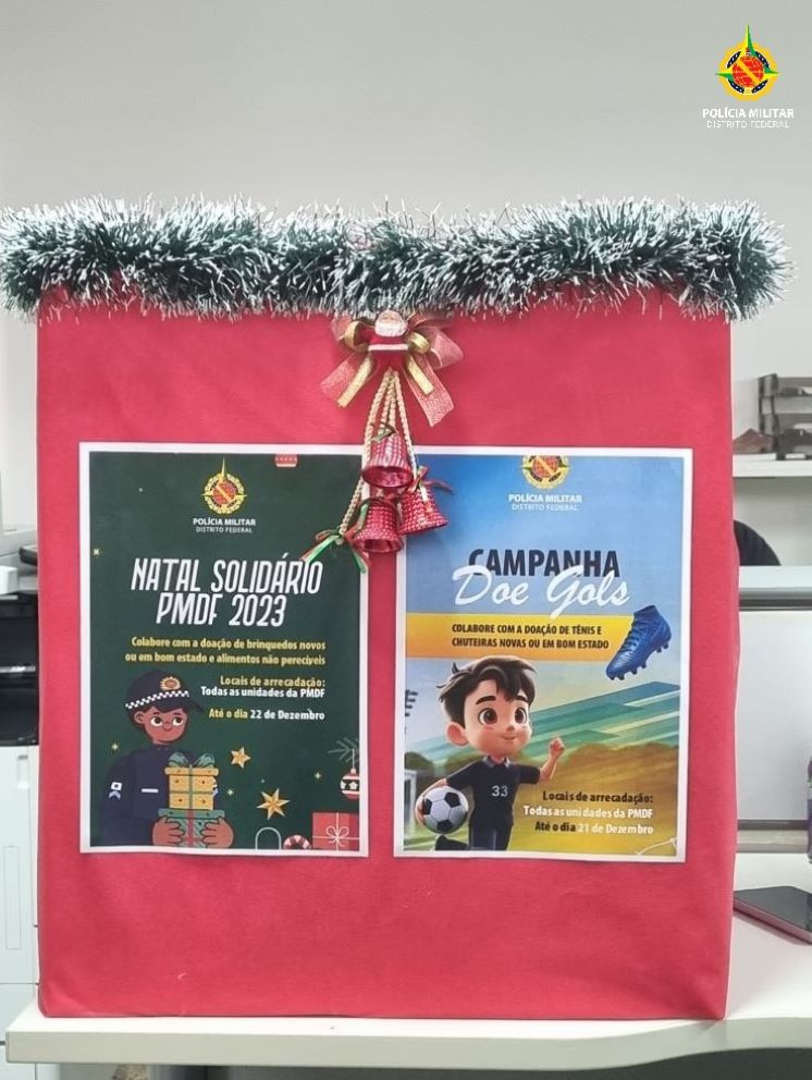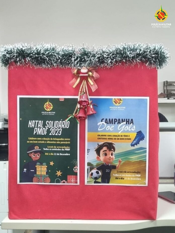 A Polícia Militar do Distrito Federal (PMDF) está desenvolvendo a Campanha Social “Doe Gols”, cujo objetivo é arrecadar tênis e chuteiras novas ou em boas condições, a fim de serem distribuídas a crianças e adolescentes participantes dos Programas e Ações Sociais Preventivos de Segurança Pública no âmbito da Instituição.