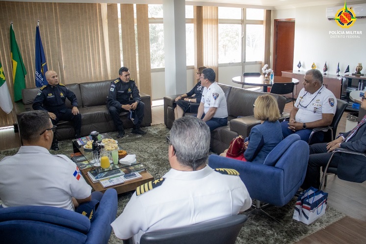 O comandante-geral, coronel Fábio Augusto Vieira, o subcomandante-geral, coronel Edvã Sousa Oliveira e o comandante do 5º Batalhão, major Delatorres da Polícia Militar do Distrito Federal receberam na manhã desta segunda-feira (16), comitiva da embaixada da República Dominicana acompanhados pelo Diretor de Policiamento Turístico (Politur) da Polícia Nacional, honorifico general Minoru Matsunaga. O encontro aconteceu no gabinete do comando-geral, no setor policial sul.