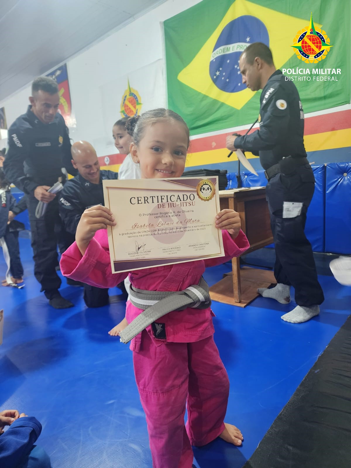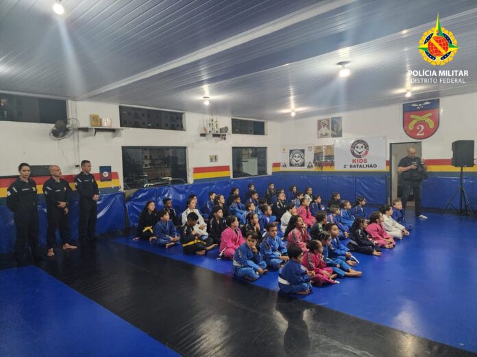Nesta quinta-feira (9), a Academia Dois de Ouro, uma iniciativa do 2º Batalhão da Polícia Militar do Distrito Federal com 23 anos de existência, sediou a cerimônia de graduação do Jiu-Jitsu Kids 2023. Cerca de 150 pessoas se reuniram para prestigiar as crianças participantes do projeto em Taguatinga.