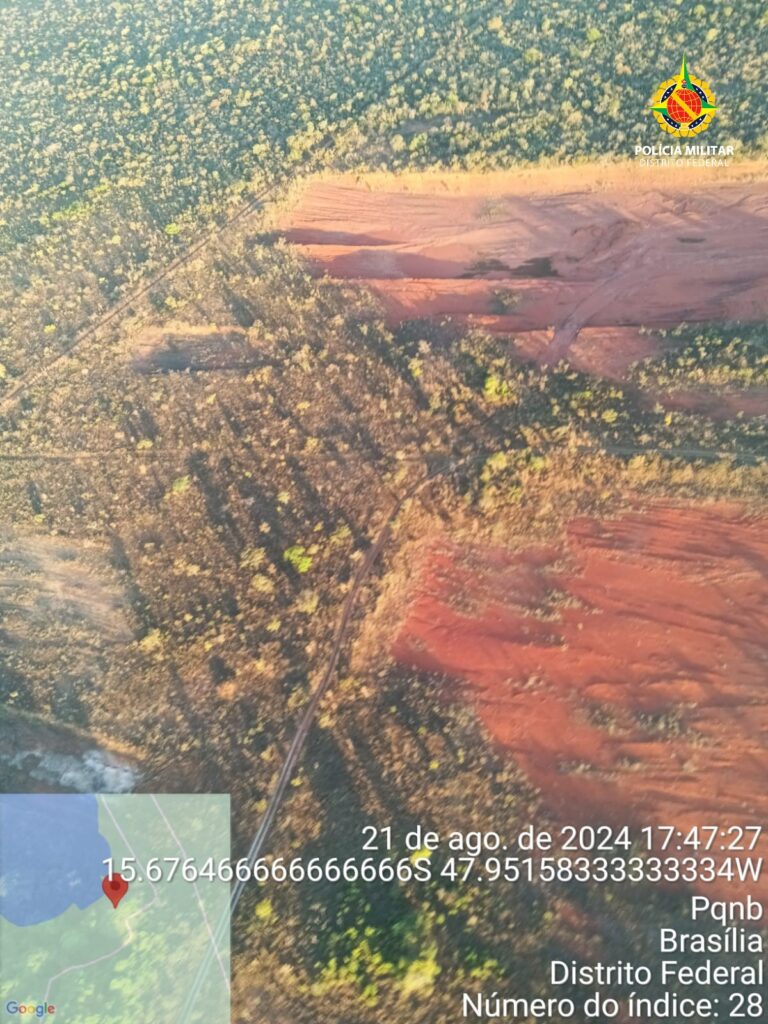 Durante o sobrevoo na região do Lago Sul, foram identificados pontos que aparentam ocupação irregular do solo em áreas de cerrado. Esses locais serão analisados com mais detalhes por equipes do Batalhão de Polícia Militar Ambiental (BPMA) em uma futura operação terrestre. Além disso, foram observados focos de queimadas na área do Parque Nacional, nas proximidades de Brazlândia, mas não houve flagrante no momento do patrulhamento.