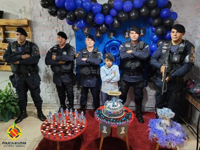 Um menino que postou em redes sociais que gostaria da presença de policiais militares em sua festa de aniversário teve uma ótima surpresa.