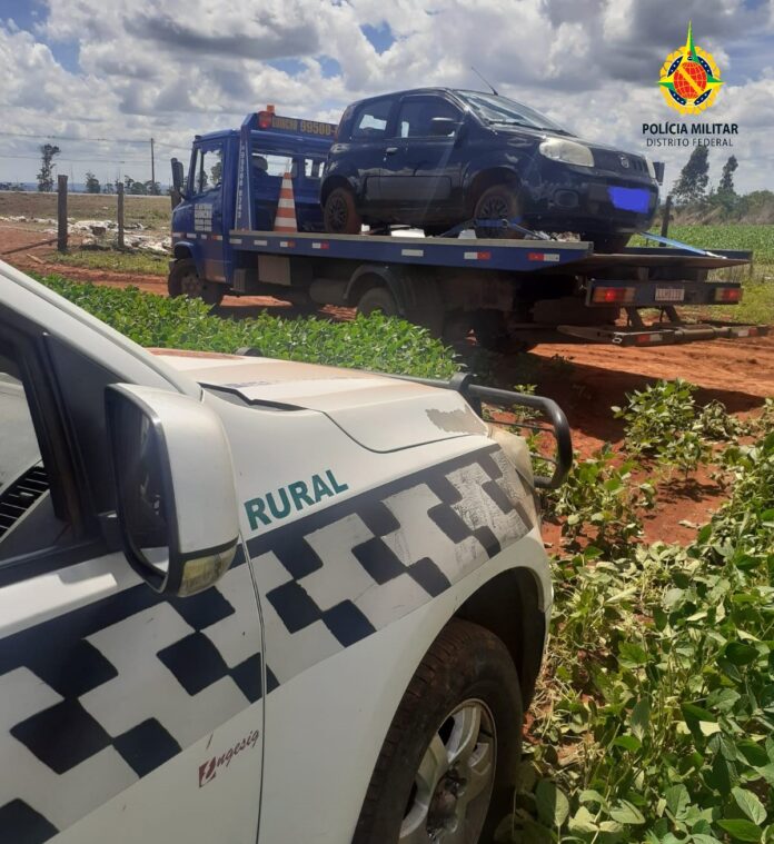 A equipe do Batalhão Rural realizava o patrulhamento quando recebeu denúncia sobre um carro abandonado em um matagal próximo a DF-140.