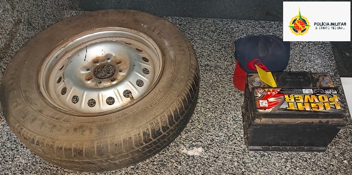 Um homem foi preso após ser flagrado com estepe e bateria furtados de um veículo estacionado na madrugada desta quinta-feira (26).