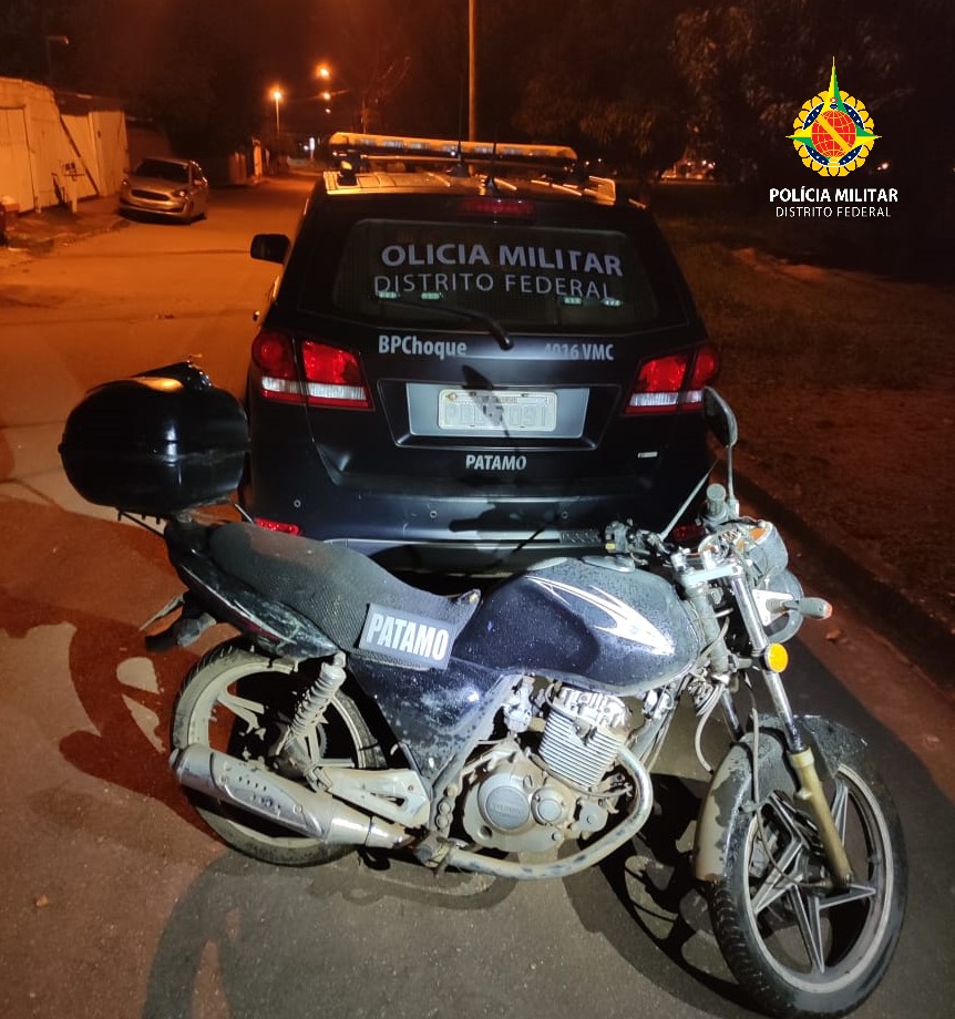 Policiais militares recuperaram uma moto roubada neste domingo (20), por volta das 23h00, em Samambaia.
