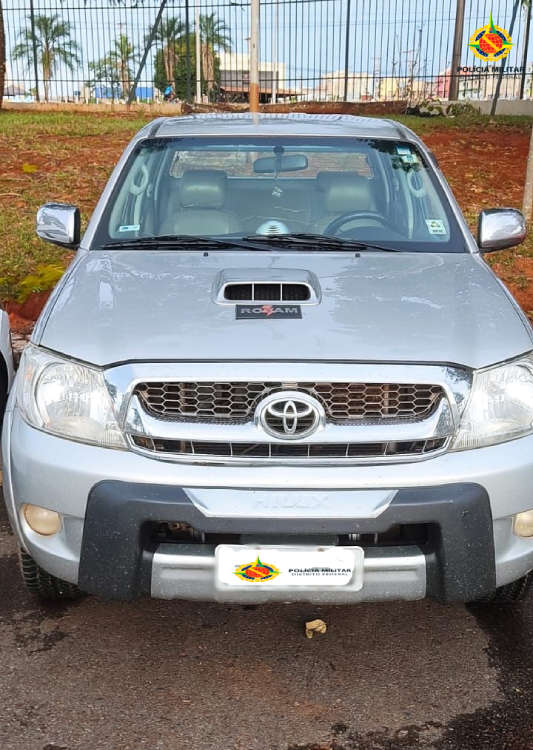 A equipe ficou sabendo via COPOM que uma caminhonete Hilux havia sido roubada, com emprego de arma de fogo na feira de Samambaia. Com a informação os policiais começaram uma varredura em Samambaia e conseguiram localizar o veículo, que se encontrava fechado.