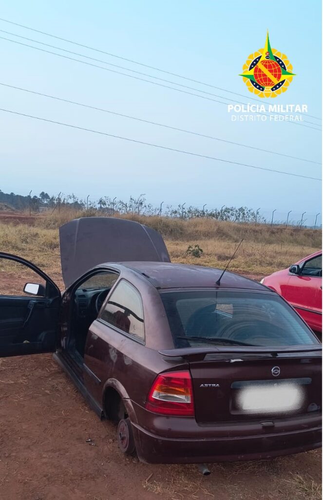 Os policiais militares se dirigiram até o local, não encontraram ninguém e o veículo estava sem as quatro rodas e sem bateria.