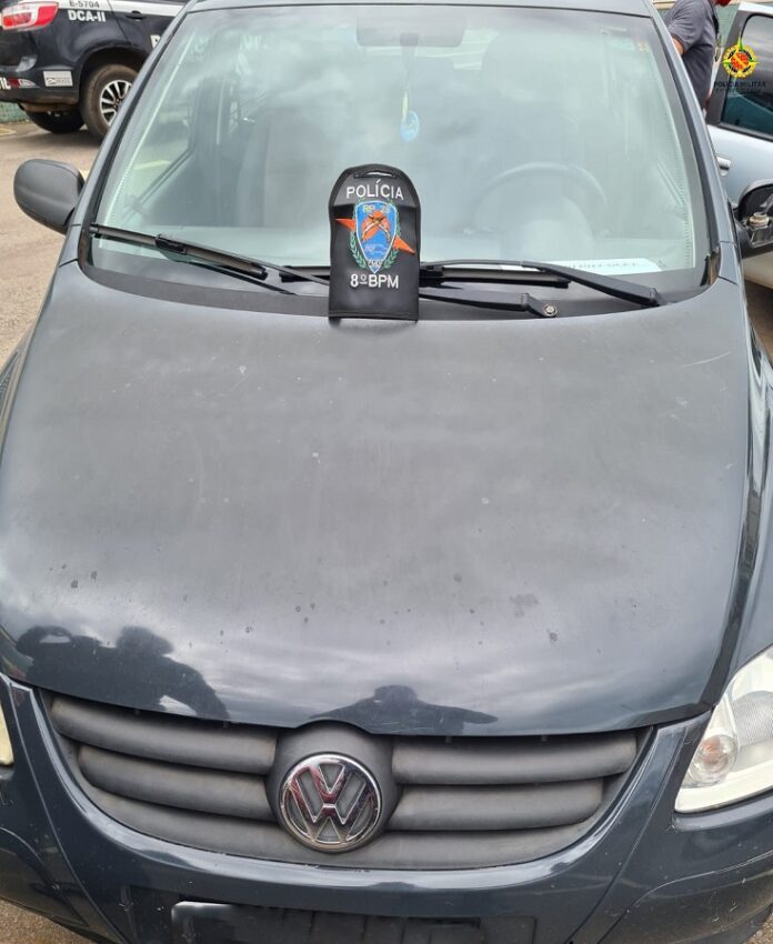 Policiais militares do 8º Batalhão de Ceilândia recuperam um carro roubado, as 13h30 desta segunda (21).