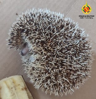 Nesta terça-feira (04), policiais militares do Batalhão de Policiamento Ambiental (BPMA) resgataram um filhote de Ouriço Pigmeu Agricano na Vicente Pires.