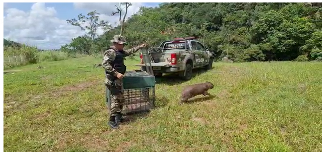 A capivara foi resgatada e, por estar em perfeitas condições de saúde, foi libertada em seu habitat.
