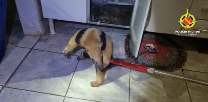 Policiais militares do Batalhão de Polícia Militar Ambiental (BPMA) foram acionados por volta das 2h, deste domingo (13), para fazer o resgate de um Tamanduá de porte grande na QR 100, Conjunto O, próximo a Igreja Católica.