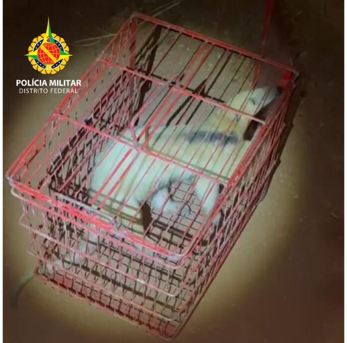 Policiais militares do Batalhão Ambiental resgataram um tamanduá-mirim em uma chácara na DF 459 em Samambaia Sul, às 18h deste domingo (12).