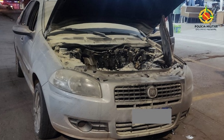 Polícia Militar age rápido e apaga incêndio em veículo em Taguatinga