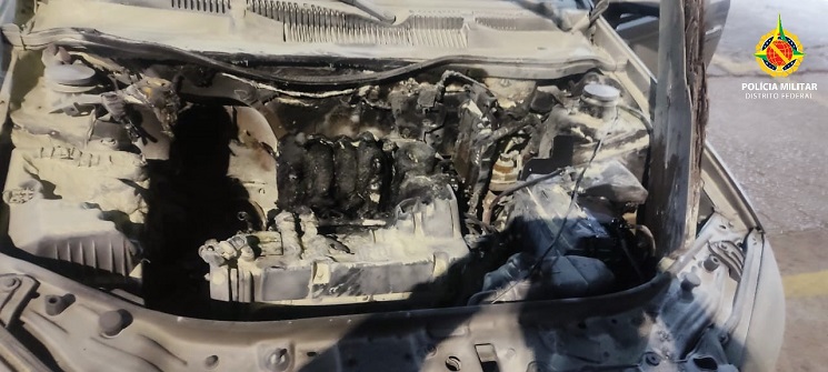 Em seguida, os policiais procuraram nos comércios da redondeza e conseguiram localizar um extintor que permitiu que as chamas fossem controladas, visto que já haviam se espalhado por todo o compartimento do motor.