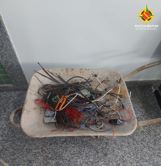 Durante o patrulhamento, os policiais localizaram o jovem na saída da via entre os trechos 02 e 04, na Asa Sul, próximo ao Monte Líbano. O adolescente estava com um carrinho de mão cheio de fios cortados e um alicate. O menor, que já foi detido quatro vezes só este ano pela PMDF, tem um histórico de crimes análogos a roubo.