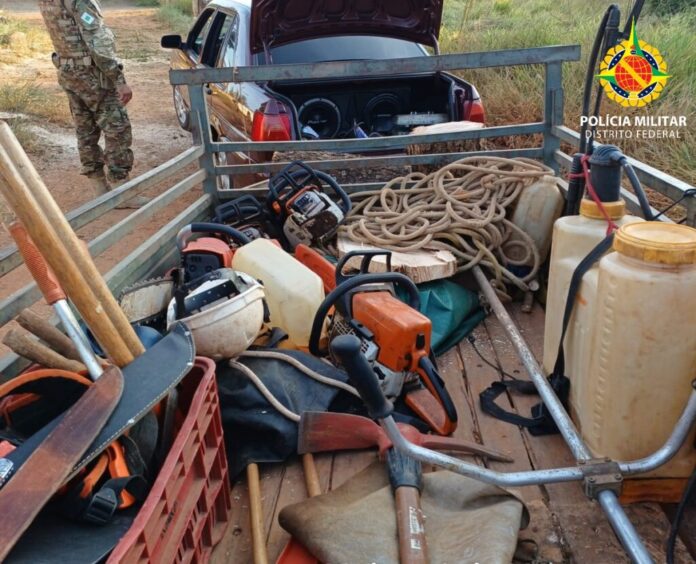 A Polícia Militar foi acionada via 190, por volta das 18h30 desta terça-feira, 28, para verificar uma situação em que alguns indivíduos estavam realizando supressão de vegetação nas proximidades de um condomínio em Planaltina.